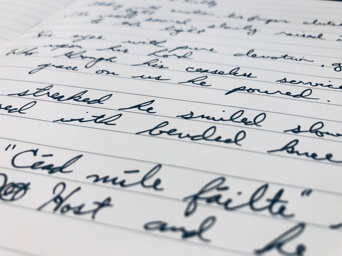 Shaking with emotion, his fingers clutching tightThe vessel sacred, slowly raised it to the light His eyes with pure devotion, gazing upon his LordWho through his ceaseless service, His Grace on us he poured Tear-streaked he smiled slowly, adored with bended kneeA soft "Céad míle fáilte" between the Host and he Who was this humble … Continue reading Double-0’Kielty